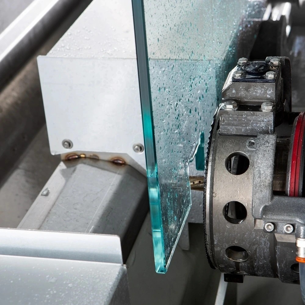 Det vertikala maskinkonceptet ger ett lågt fotavtryck, enkel åtkomst och god ergonomi, samtidigt som glaset hålls stabilt genom hela bearbetningen. Multi Up M V0X hanterar även formade och icke rätvinkliga glas, förutsatt en rak sida mot rullföringen, vilket ger hög flexibilitet i produktionen.