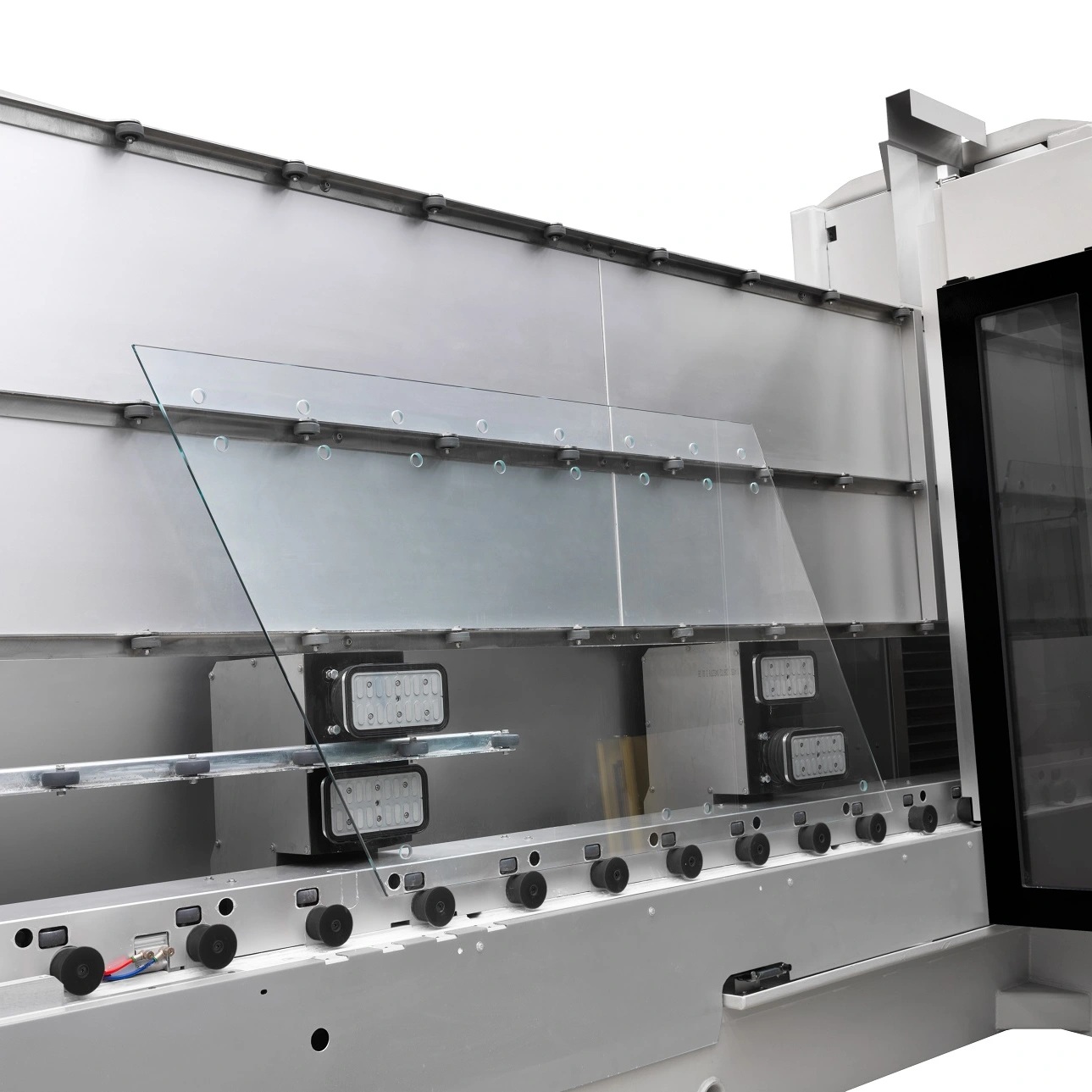 Maskinen är utrustad med Smart Shuttles – ett dynamiskt system för automatisk positionering och ompositionering av sugkoppar. Varje sugkopp aktiveras individuellt och glaset hålls kontinuerligt under bearbetningen. Detta möjliggör bearbetning av instabila, tunna och lätta glas som traditionella vertikala maskiner ofta har utmaningar med, samtidigt som vibrationer minskas och ytkvaliteten förbättras.
