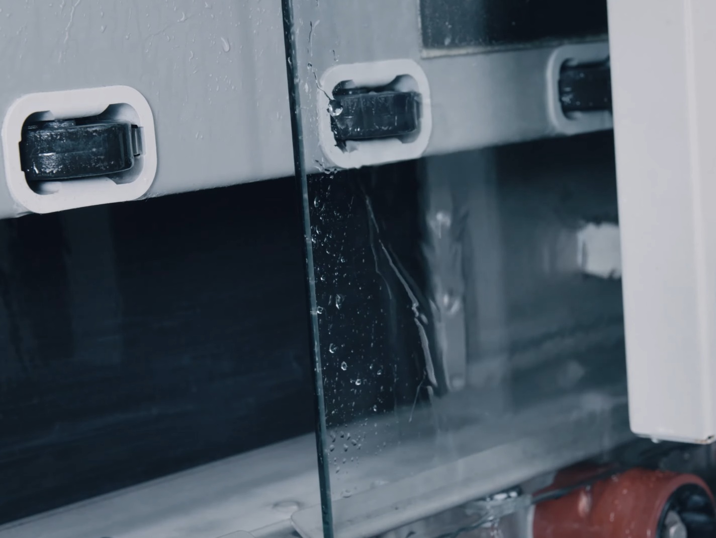 Kärnan i KSD-A är LiSEC:s patenterade LiTEC slider-teknologi, som säkerställer jämn och precis kantfog och slipning – oavsett kvaliteten på det färdigskurna glaset. De flytande verktygen matas mot glaset med hjälp av vattentryck, vilket ger optimal anpassning, hög kantstyrka och enhetlig ytkvalitet.