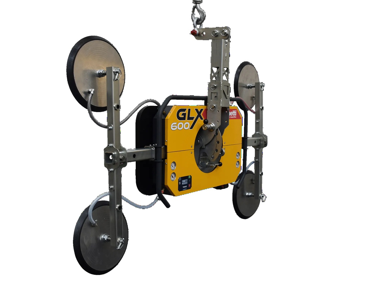 GLX600 från Righetti är en batteridriven vakuumlyftare för glas, utvecklad för användning tillsammans med minikranar och annan lyftutrustning med begränsad lyftkapacitet. Den kompakta konstruktionen och den låga egenvikten gör GLX600 väl lämpad för hantering av glasplattor på byggarbetsplats och i monteringssituationer.