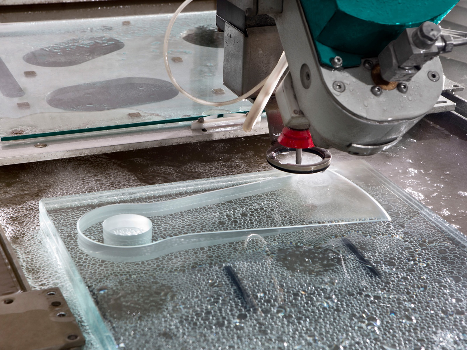 Med 5-axlat skärhuvud och kontinuerligt roterande C-axel kan Cut Up J utföra krävande glasbearbetning i en och samma operation. Detta ger hög repeterbar kvalitet och minskar behovet av efterbearbetning. Maskinen passar för både monolitiskt, laminerat och specialglas.